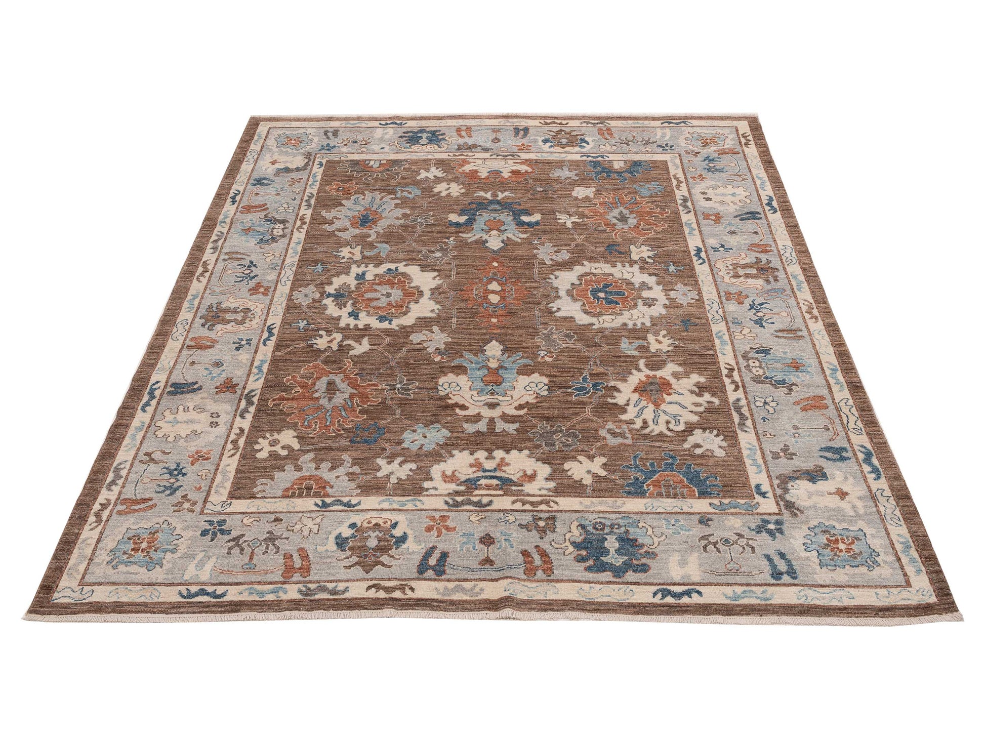 Oushak Brown Light Blue 8.4x10 Hand Knotted Rug
