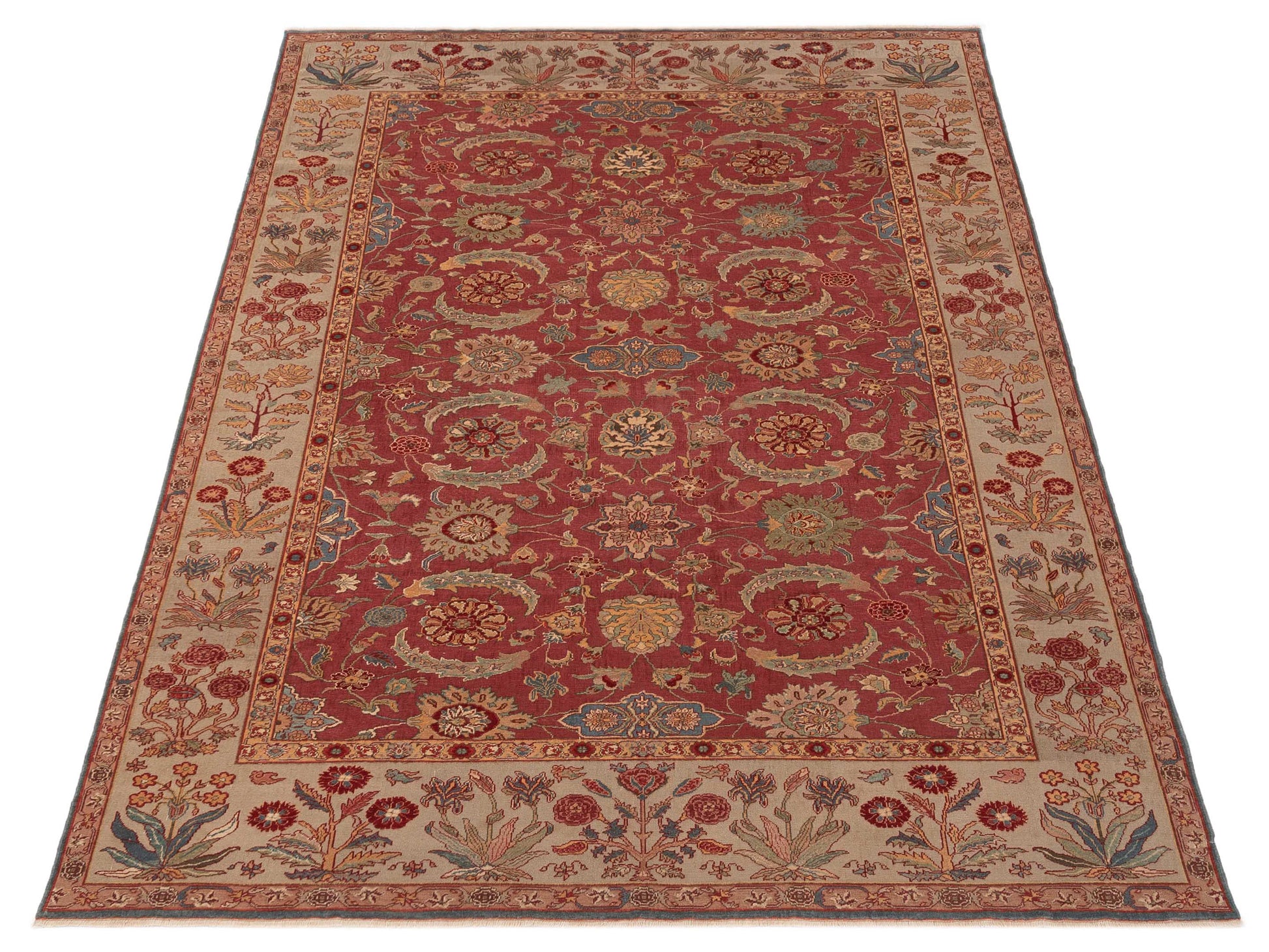 Antiqua Loom Red Cream 9.4x13.3 Hand Knotted Rug