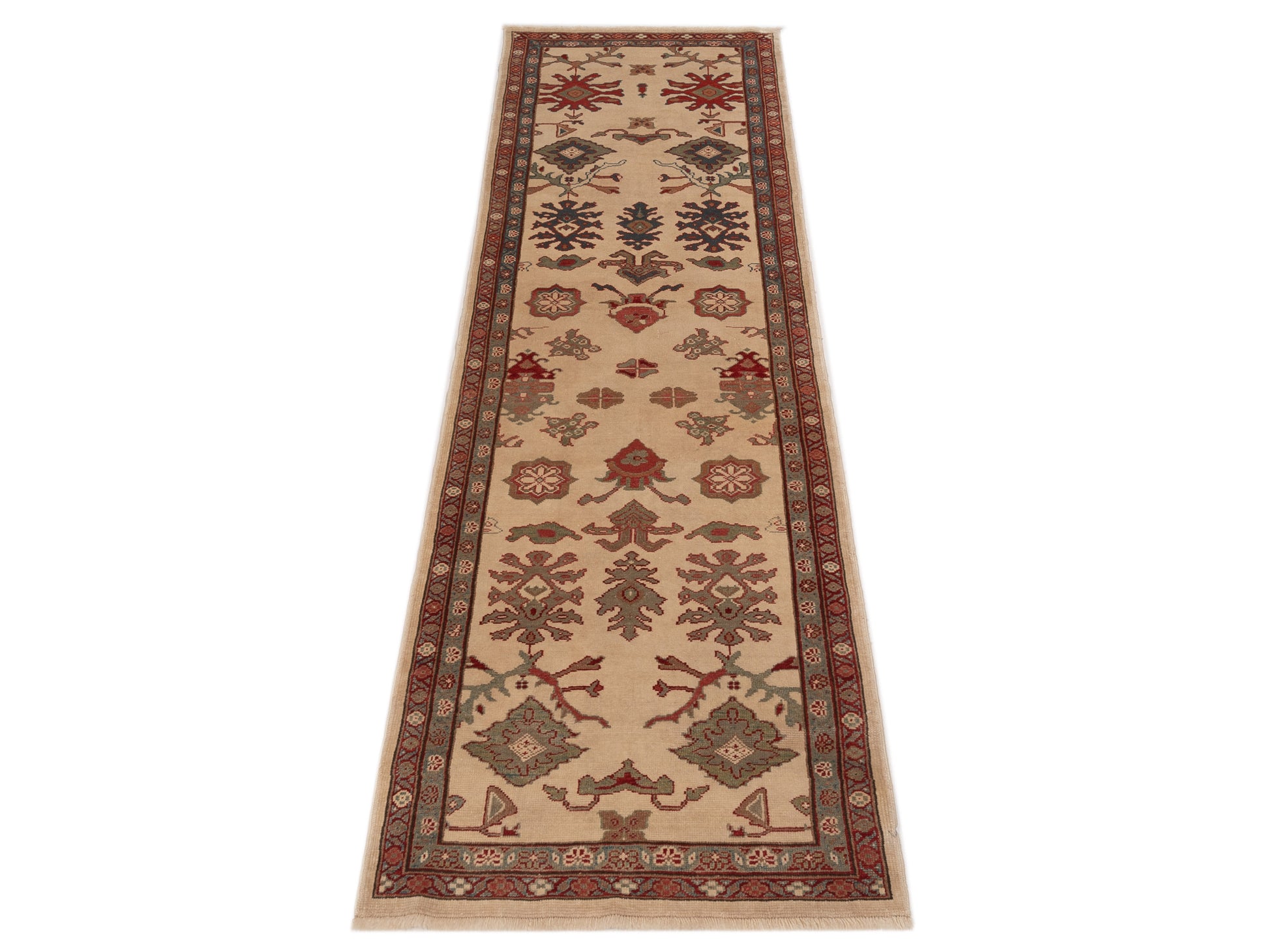 Antiqua Loom Ivory Green 3x11.1 Hand Knotted Rug