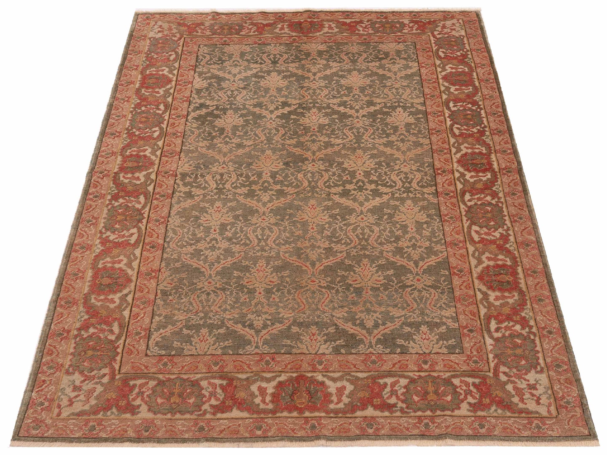 Antiqua Loom Green Ivory 5.10x8.7 Hand Knotted Rug
