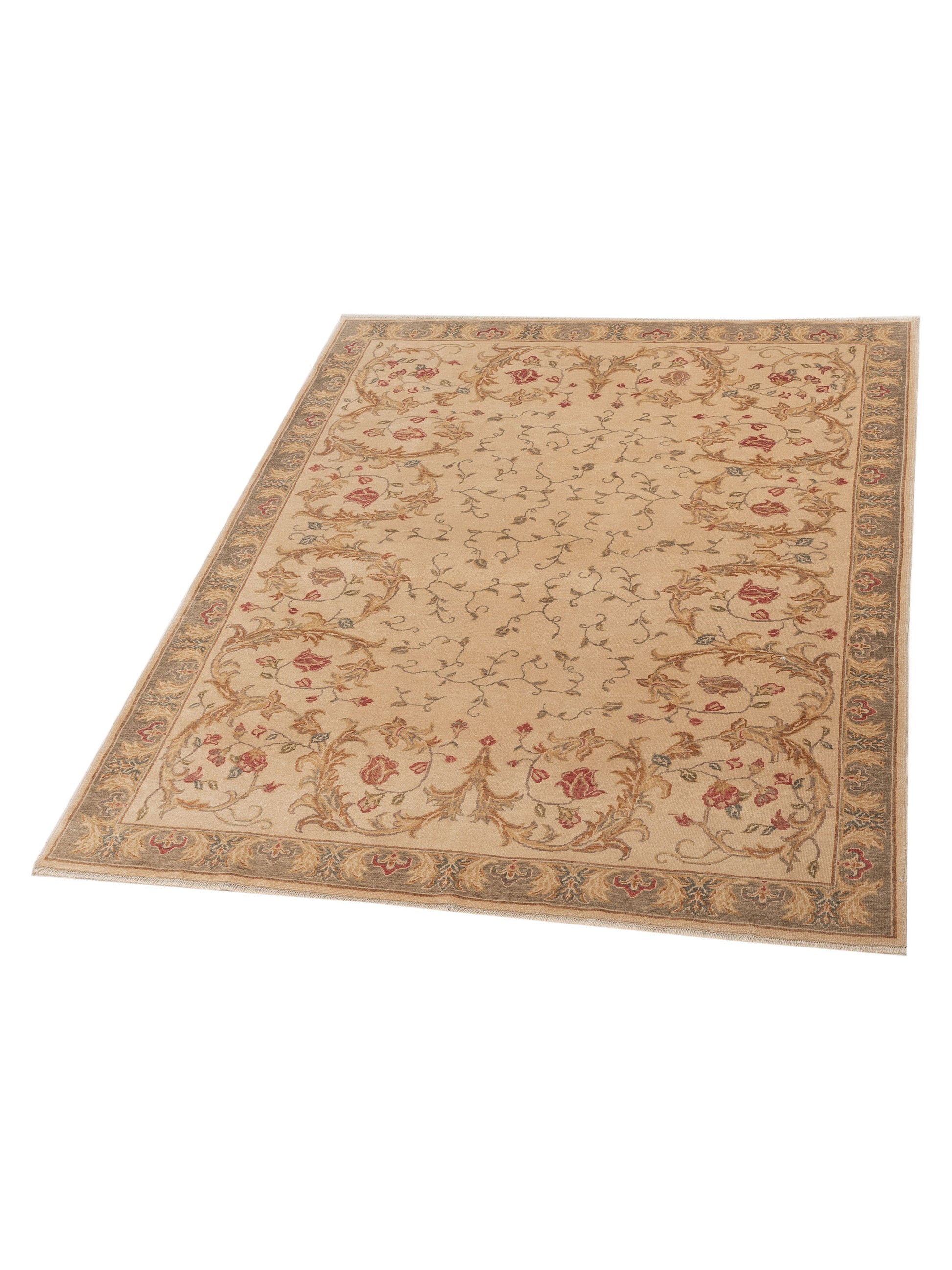 Antiqua Loom Ivory Green 6.9x8.2 Hand Knotted Rug
