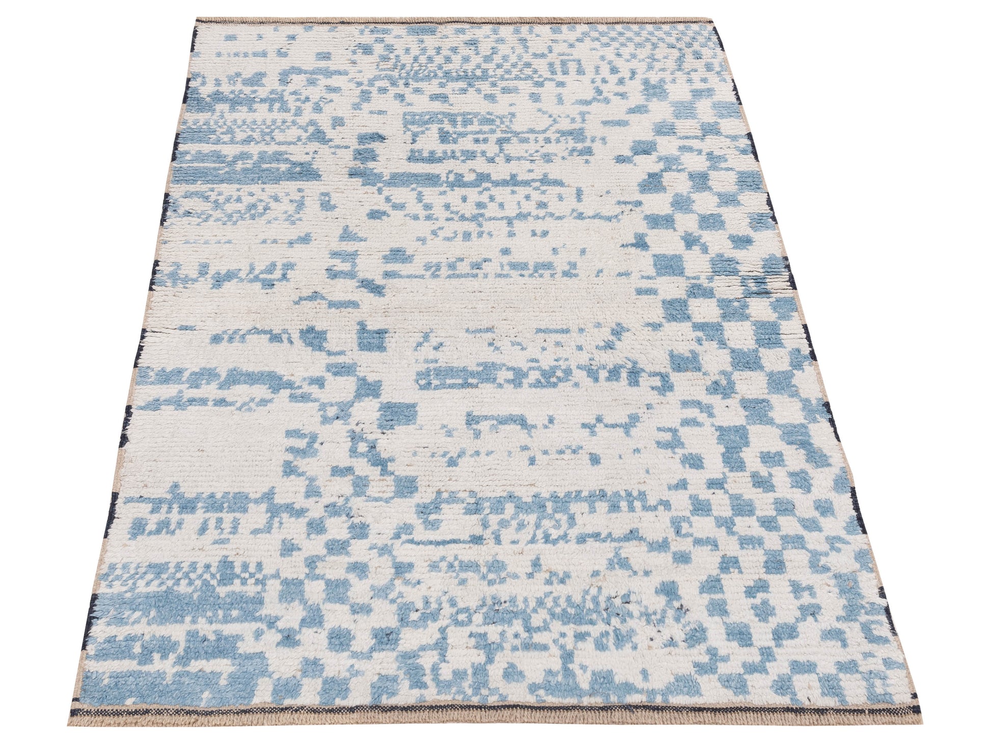 Anavera Ivory Blue 3.11x5.10 Hand Knotted Rug