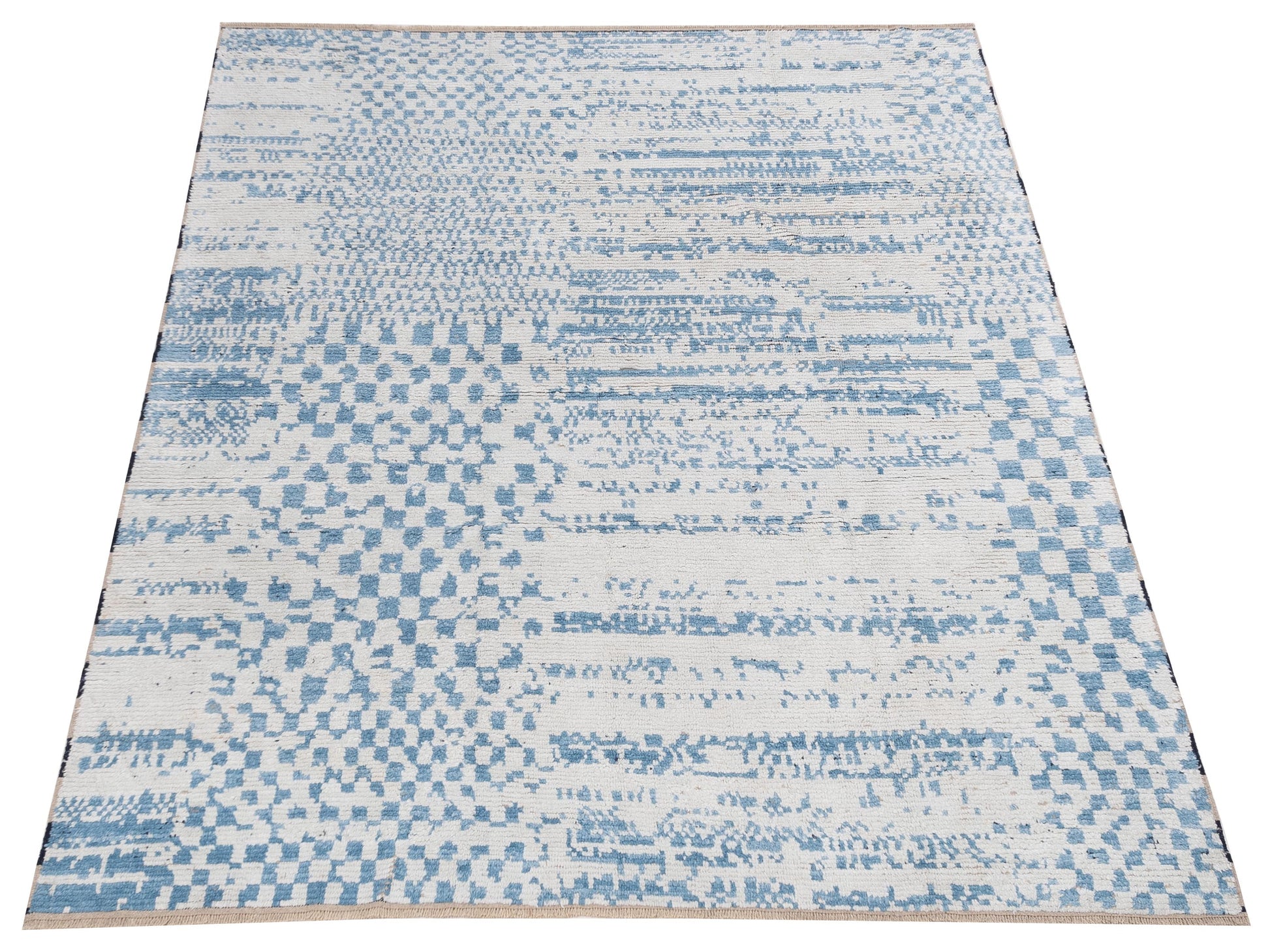 Anavera Ivory Blue 8x9.11 Hand Knotted Rug