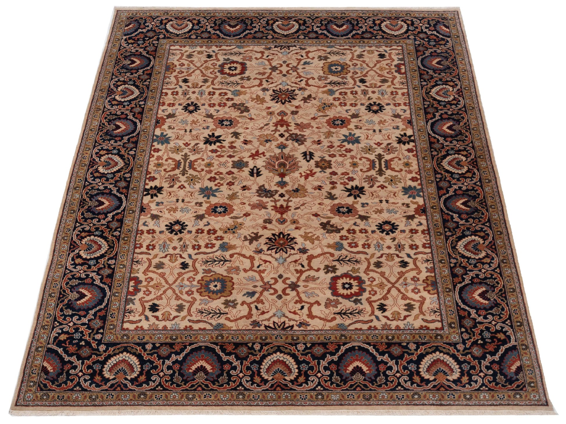 Corvella Ivory Navy 9x11.11 Hand Knotted Rug