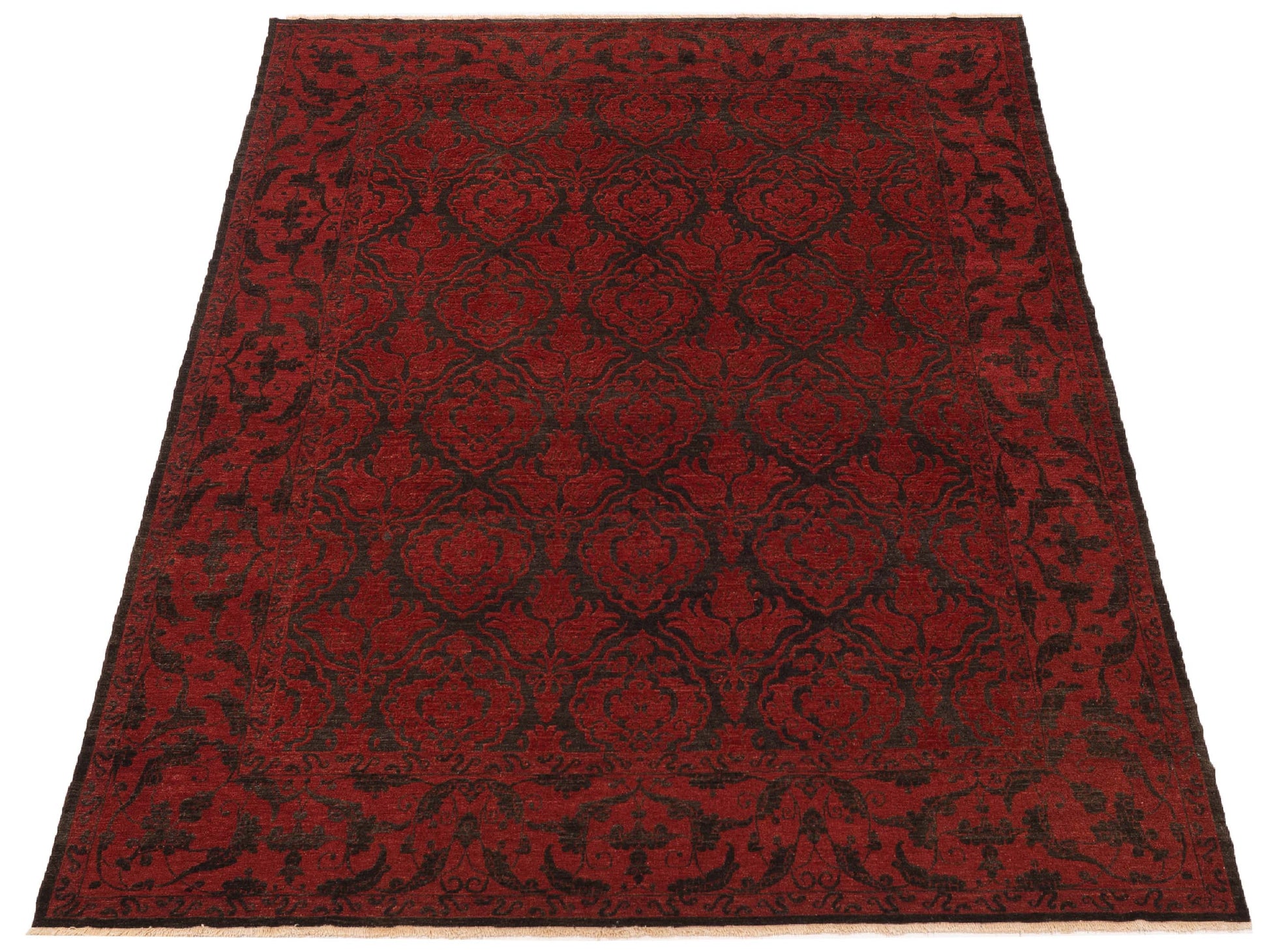 Defnera Charcoal Red 9.7x11.9 Hand Knotted Rug