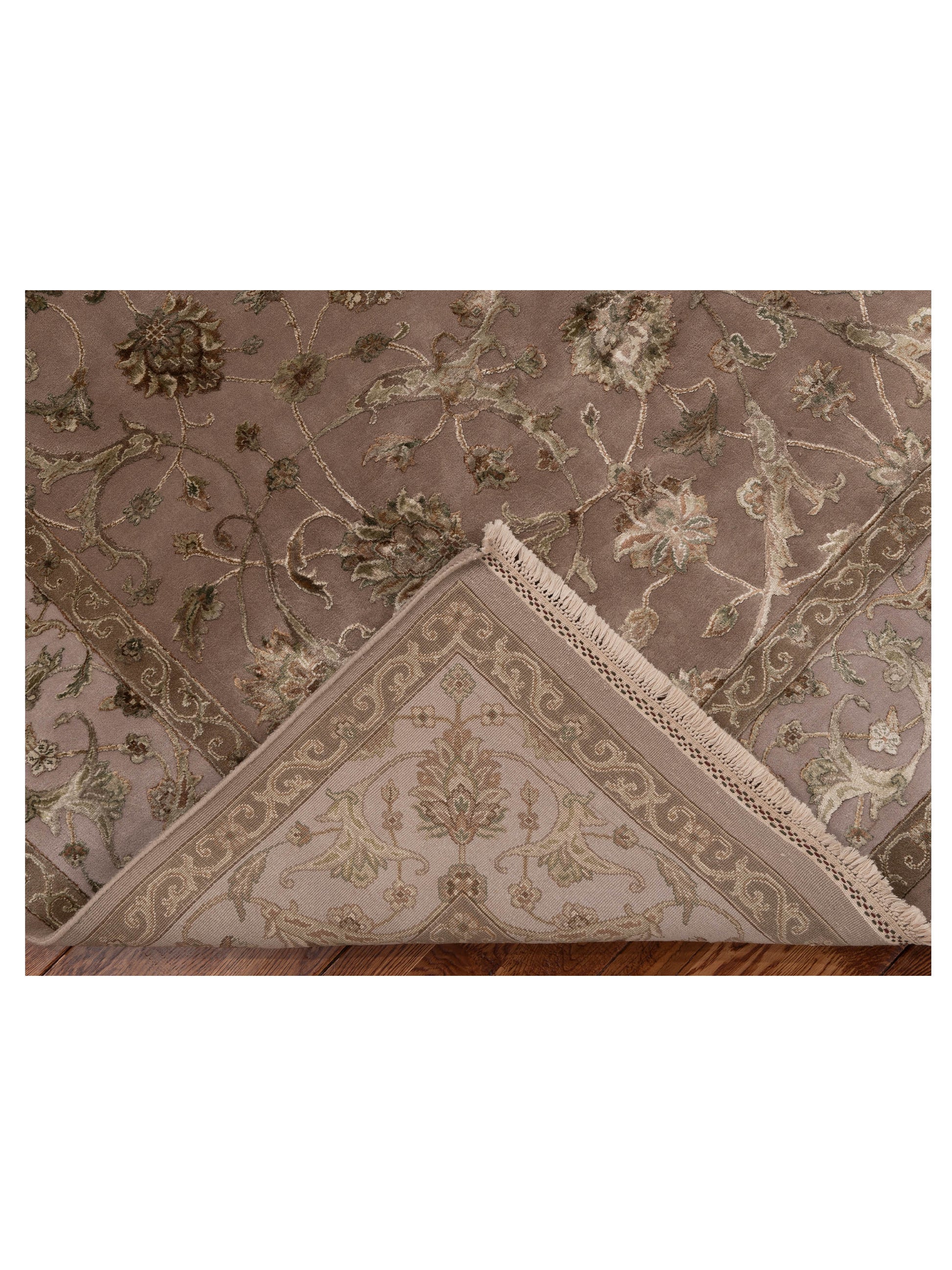 Elevate your space with our Silver Javira rug, made from Wool/Bamboo Silk Sized at 7x10, it's a timeless piece that blends beautifully with any decor.