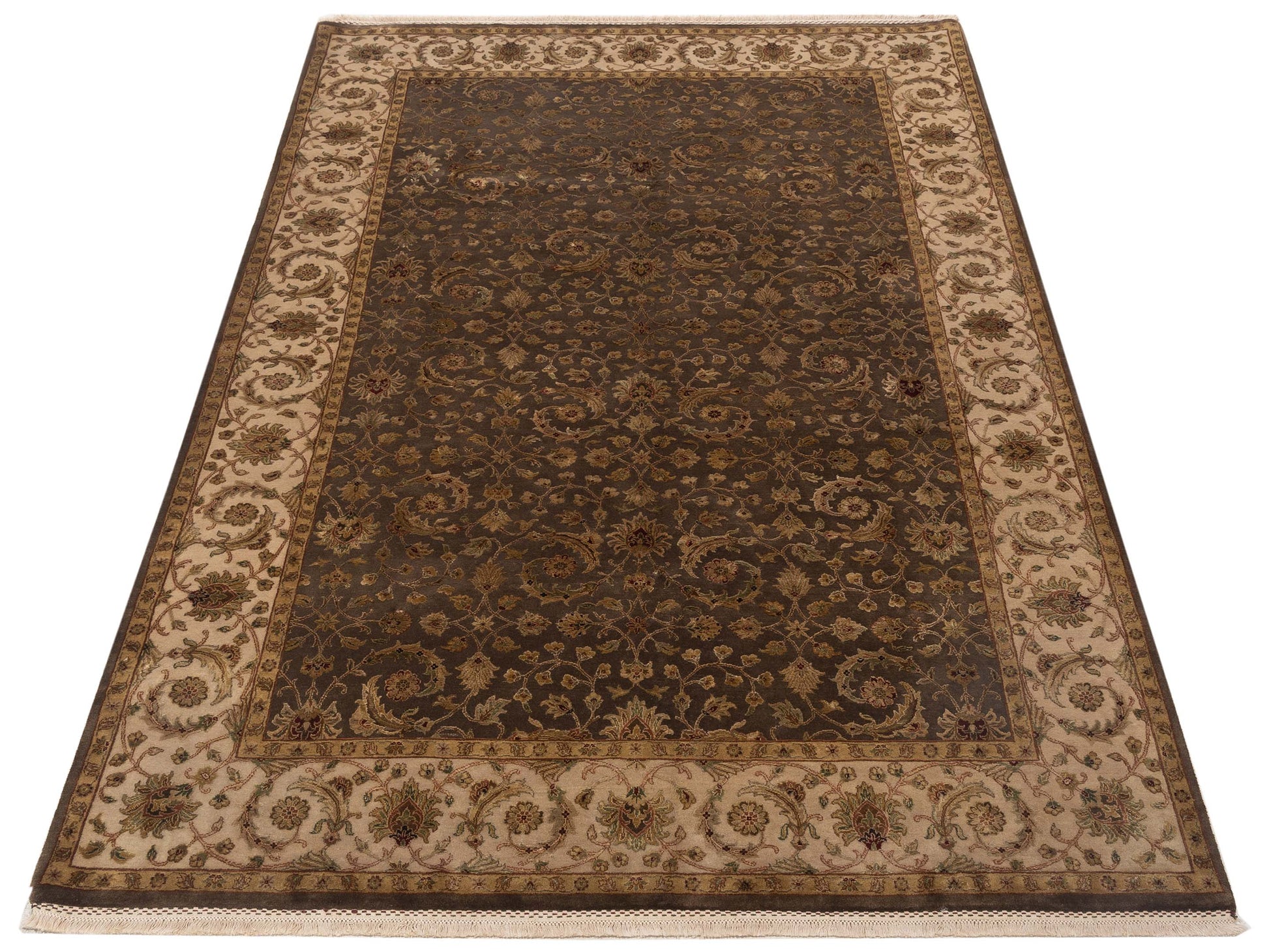 Javira Silk Brown Beige 6.2x9.8 Hand Knotted Rug