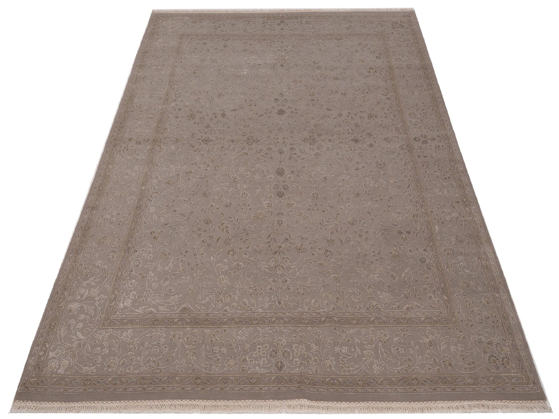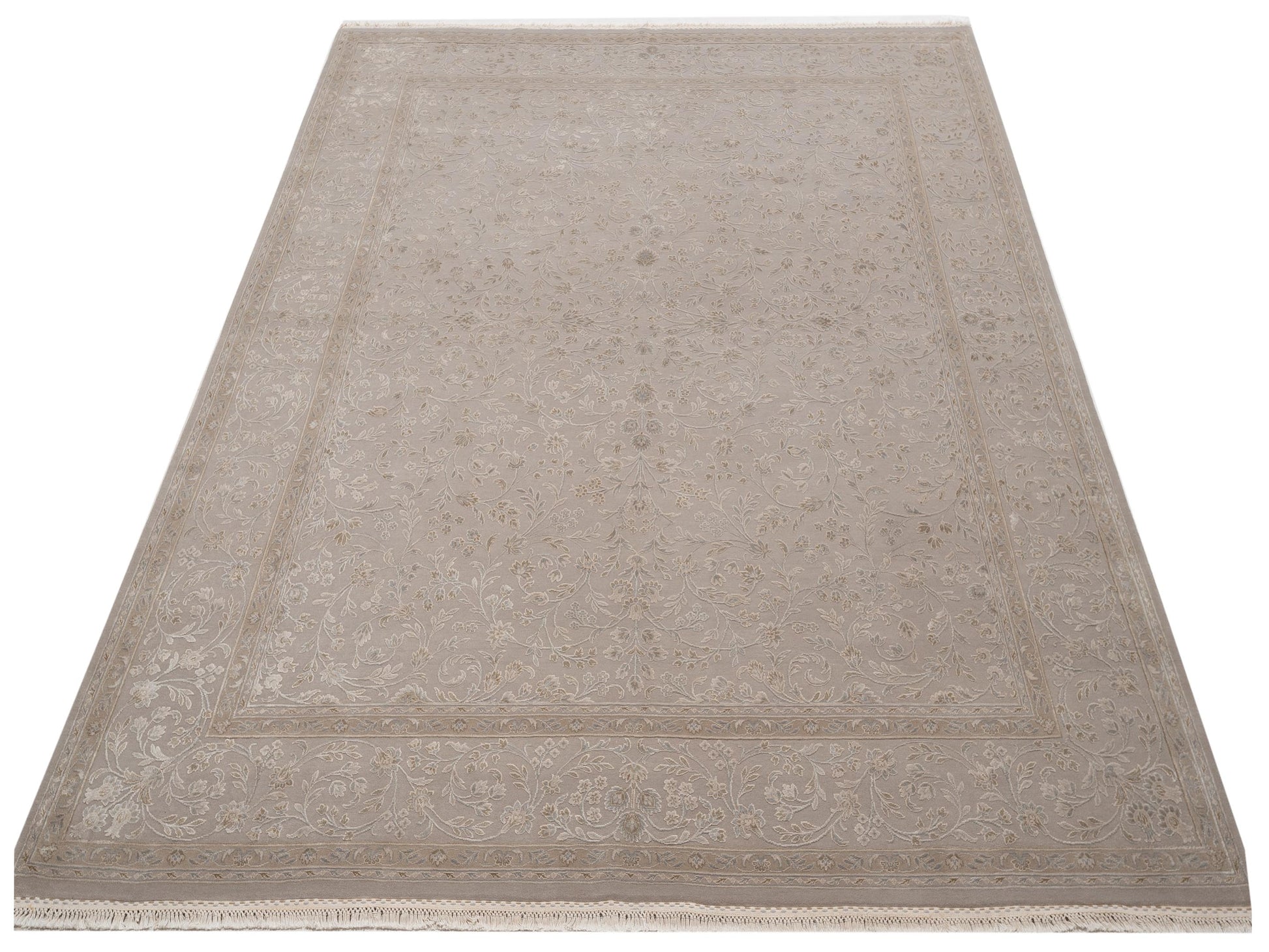 Elevate your space with our Silver Javira Silk rug, made from Silk & Wool Sized at 8x10, it's a timeless piece that blends beautifully with any decor.