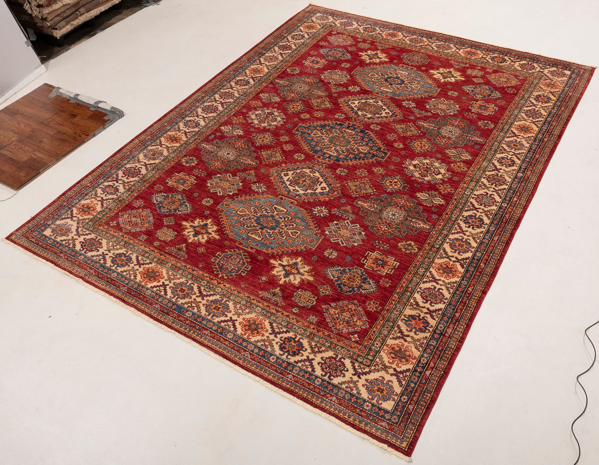 Elevate your space with our Red Zamira rug, made from Handspun Wool Sized at 9x12, it's a timeless piece that blends beautifully with any decor.