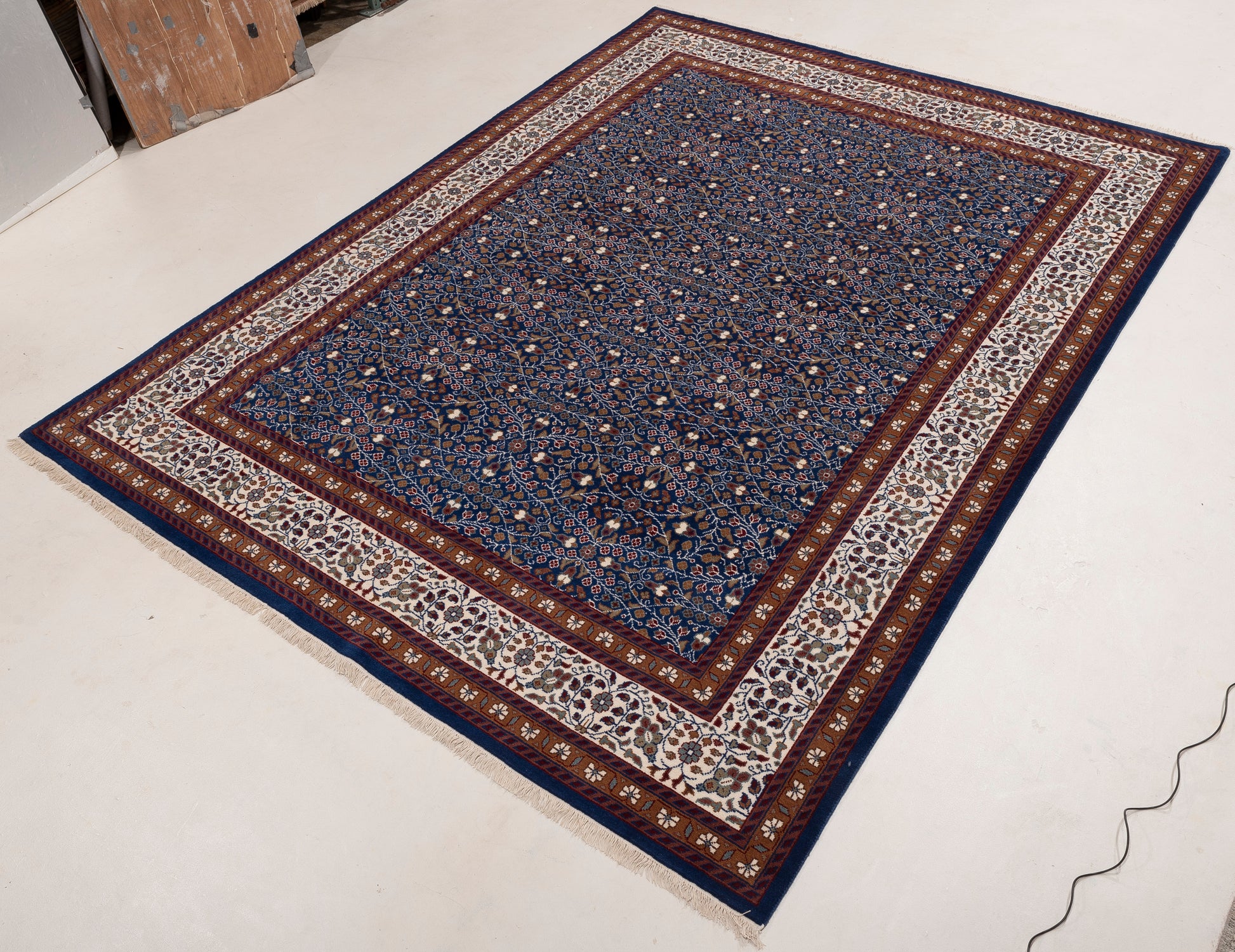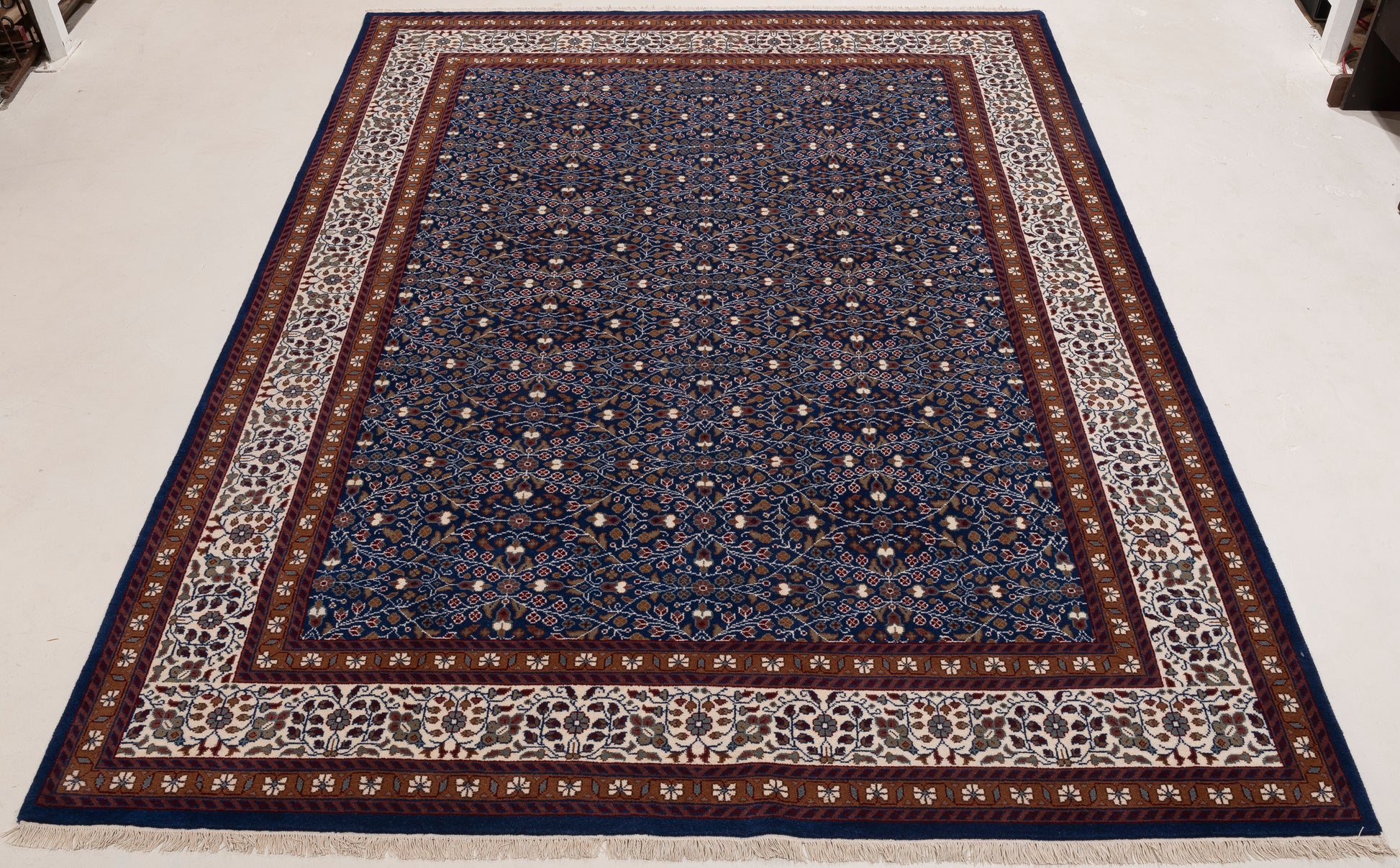 Elevate your space with our Dark Blue Caesarea rug, made from Wool Sized at 9x12, it's a timeless piece that blends beautifully with any decor.