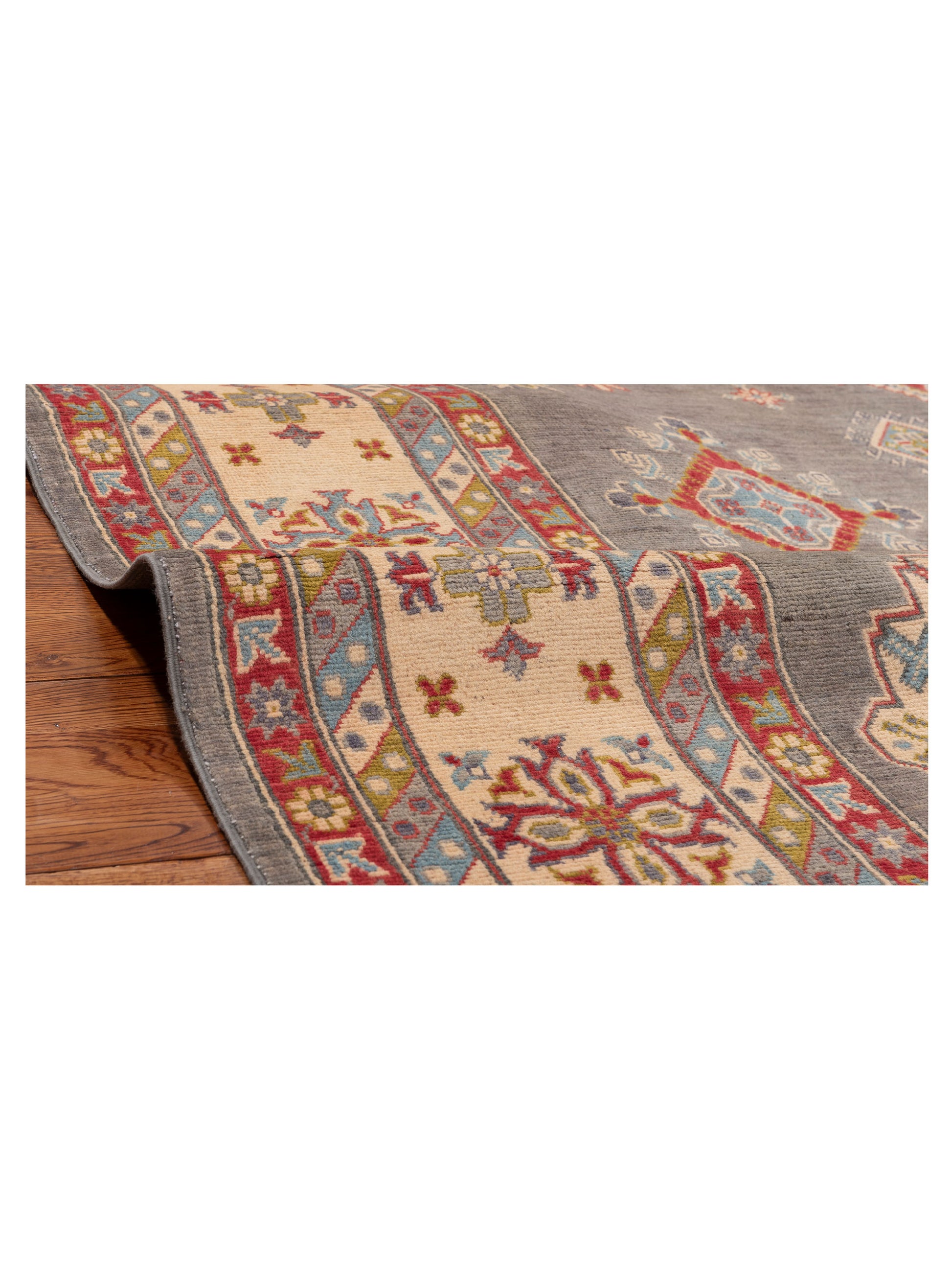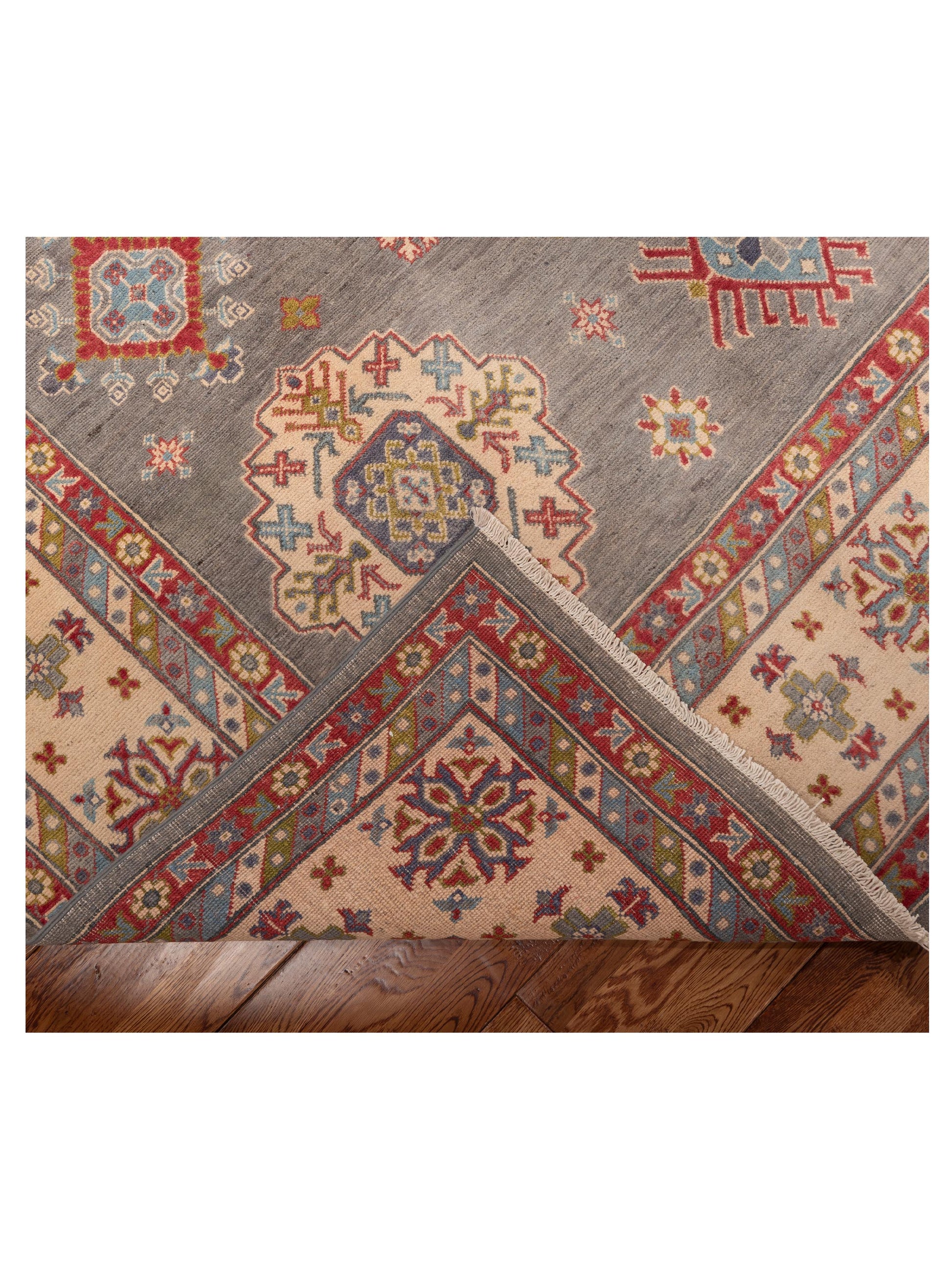 Elevate your space with our Gray Kazura rug, made from Handspun Wool Sized at 8x10, it's a timeless piece that blends beautifully with any decor.