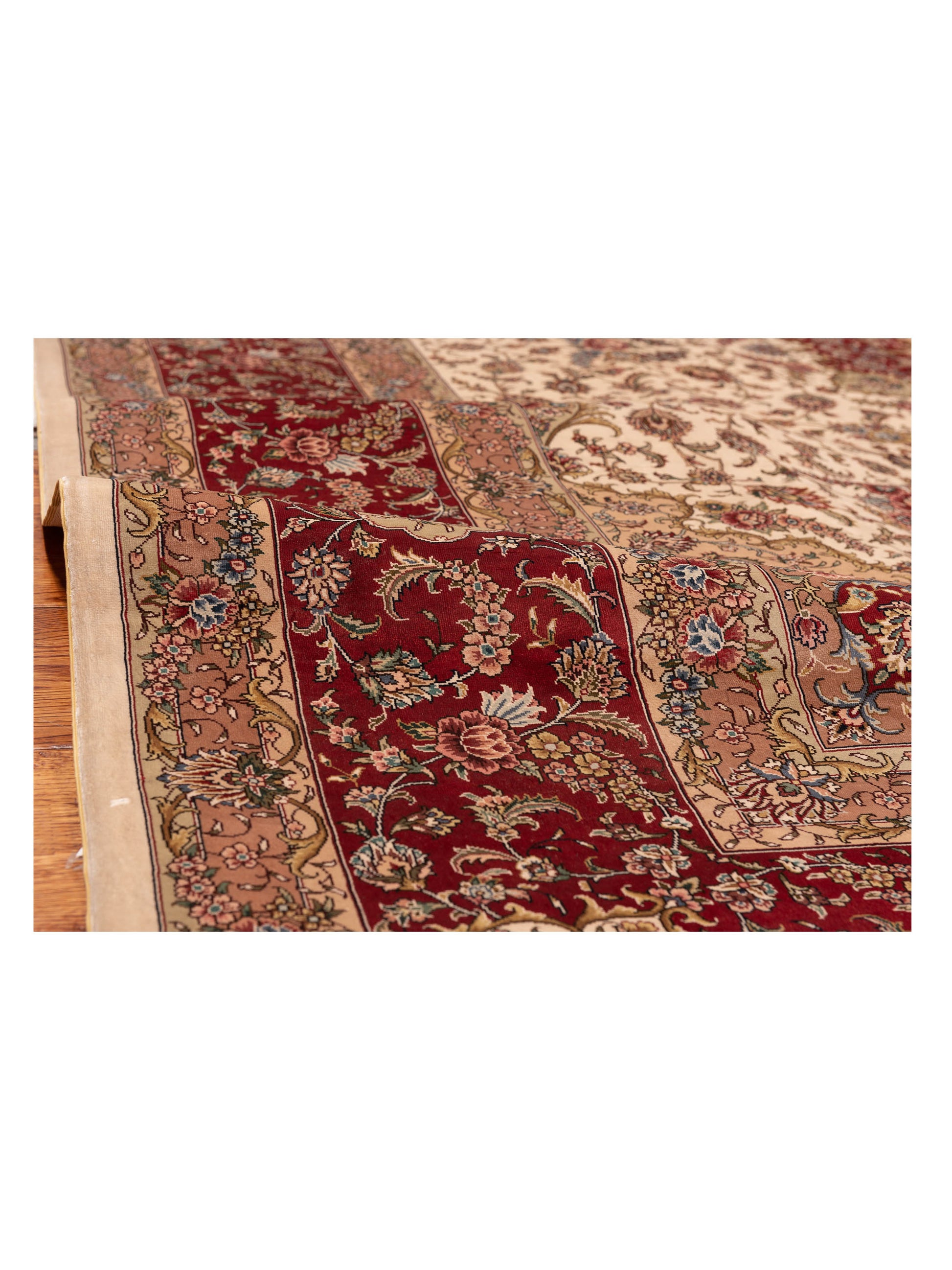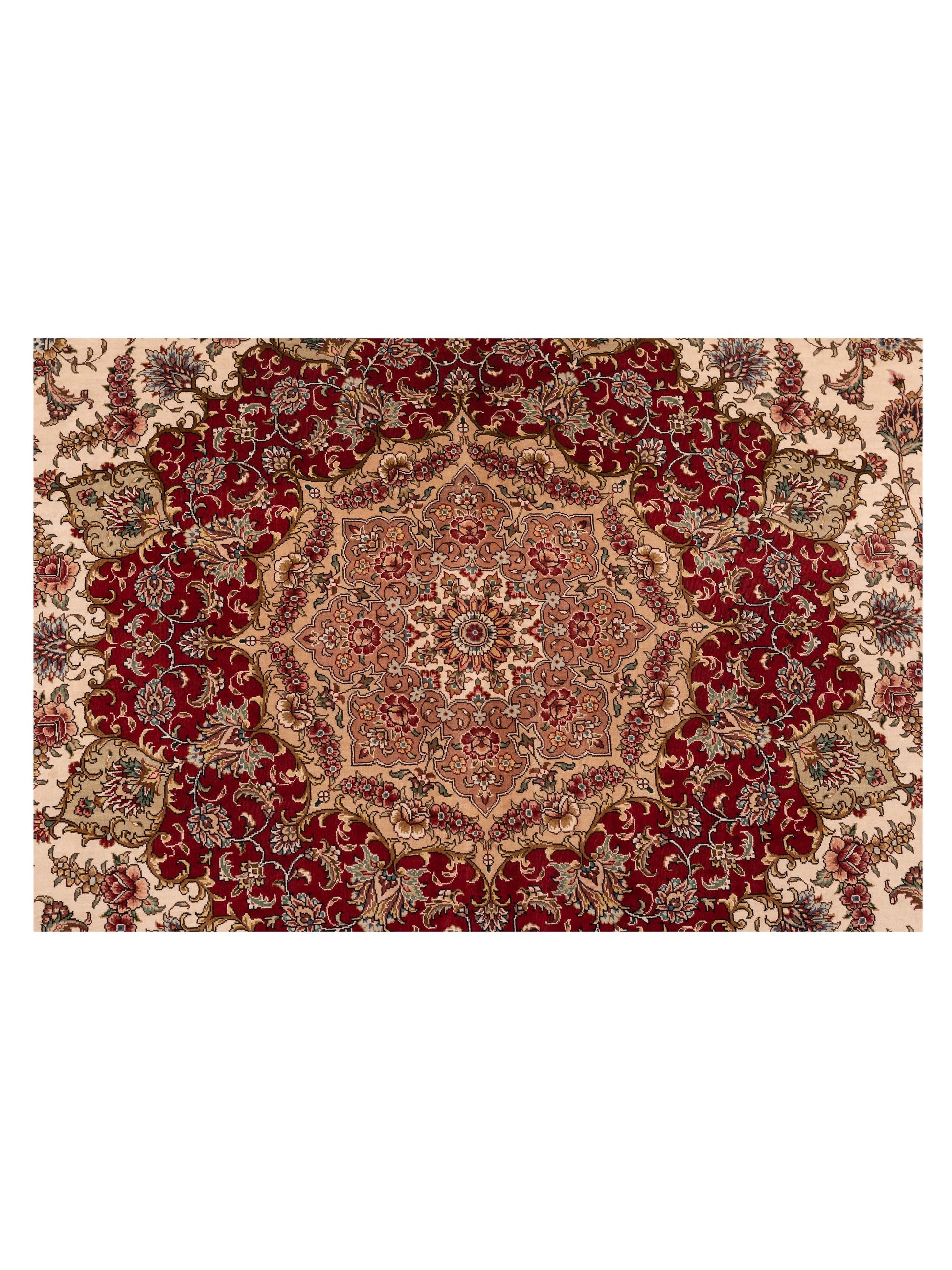 Pure Silk Ivory Red 8.1x10.2 Hand Knotted Rug