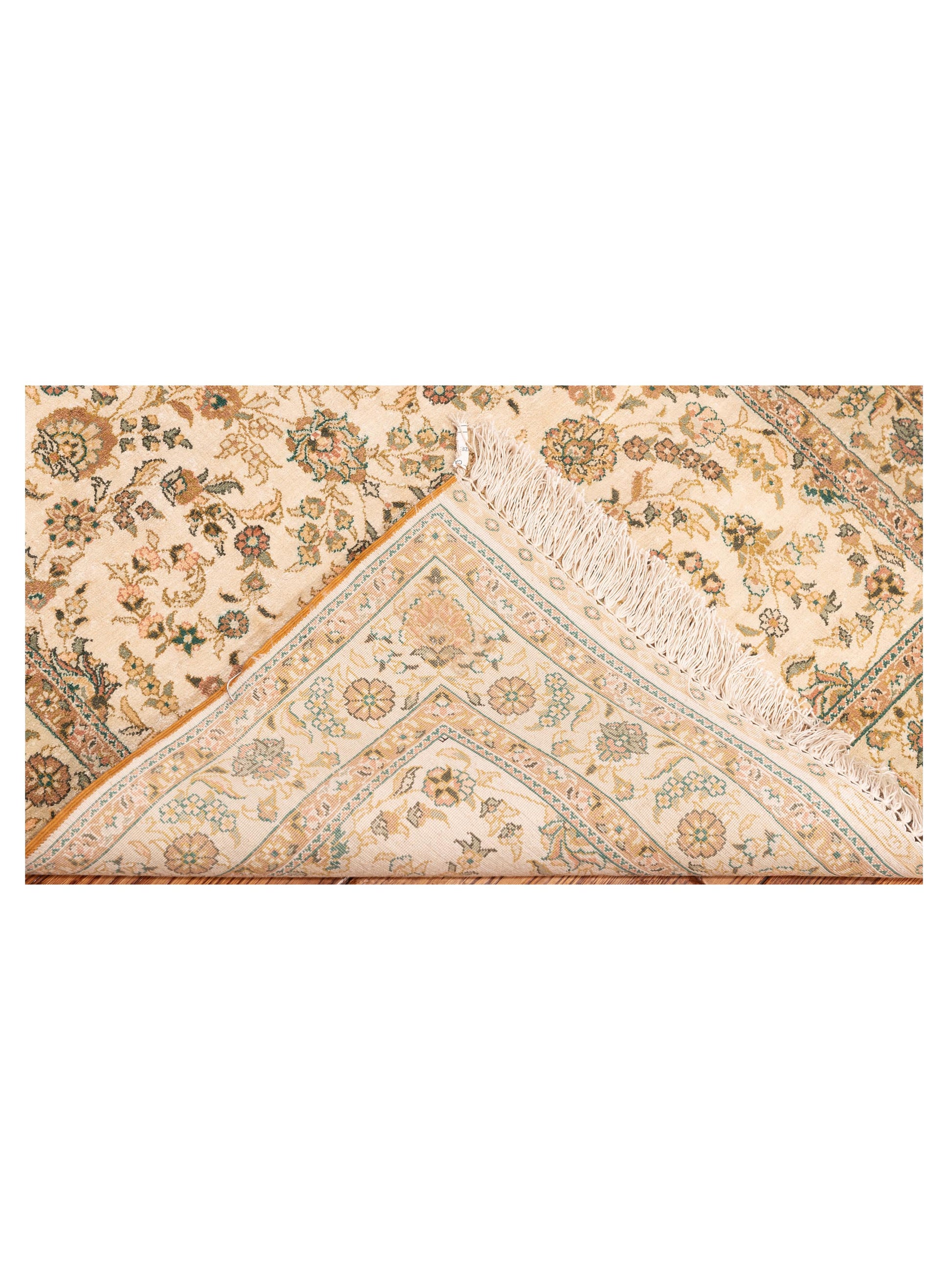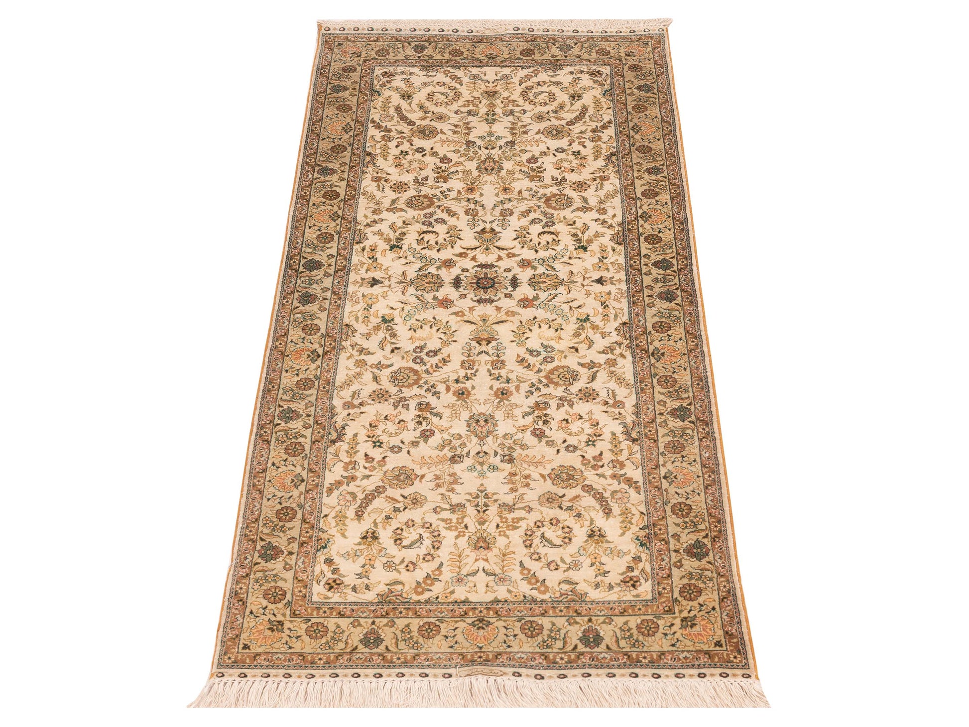 Pure Silk Ivory Light Green 2.7x6 Hand Knotted Rug