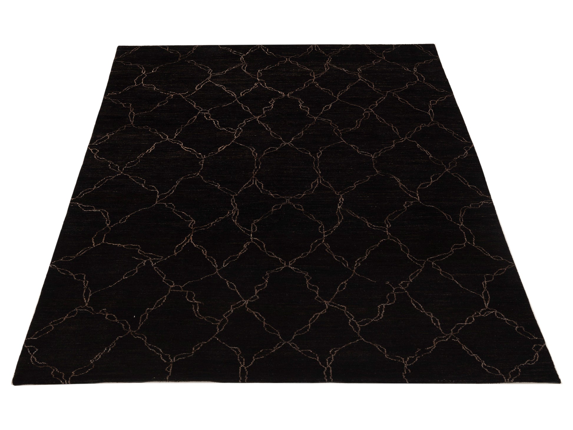 Tenzari Black Black 7.10x10.4 Hand Knotted Rug