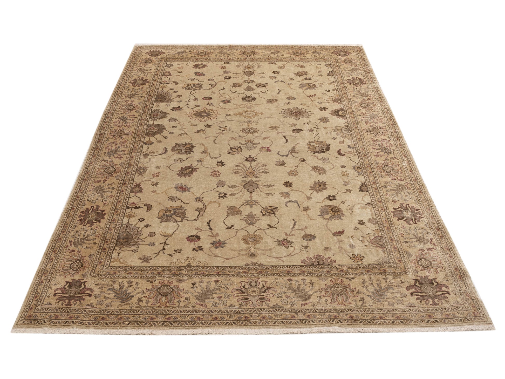 Turkish Elvaria Ivory Gold 9.5x13.2 Hand Knotted Rug