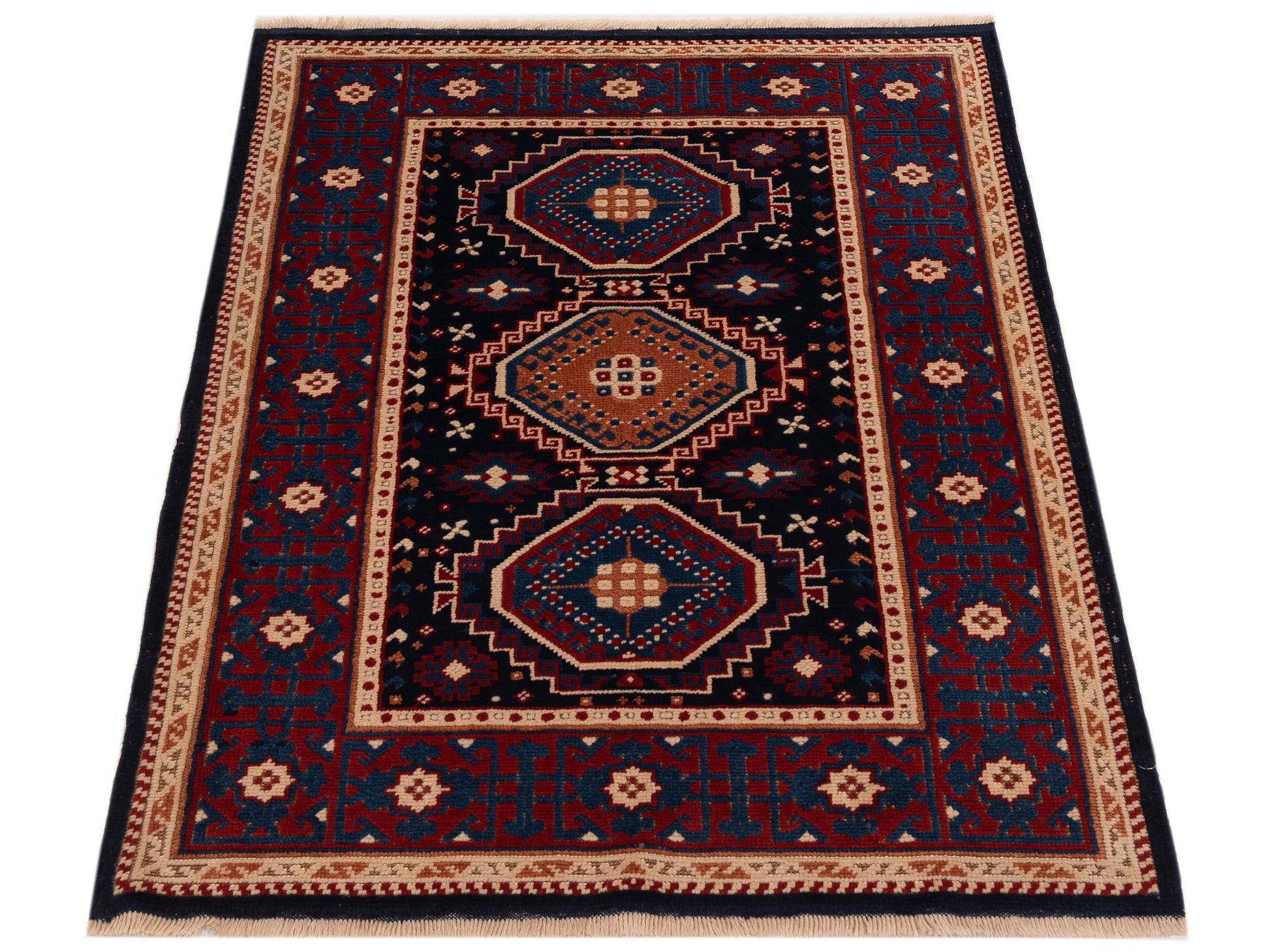 Shirvara Navy Red 4.3x5.5 Hand Knotted Rug