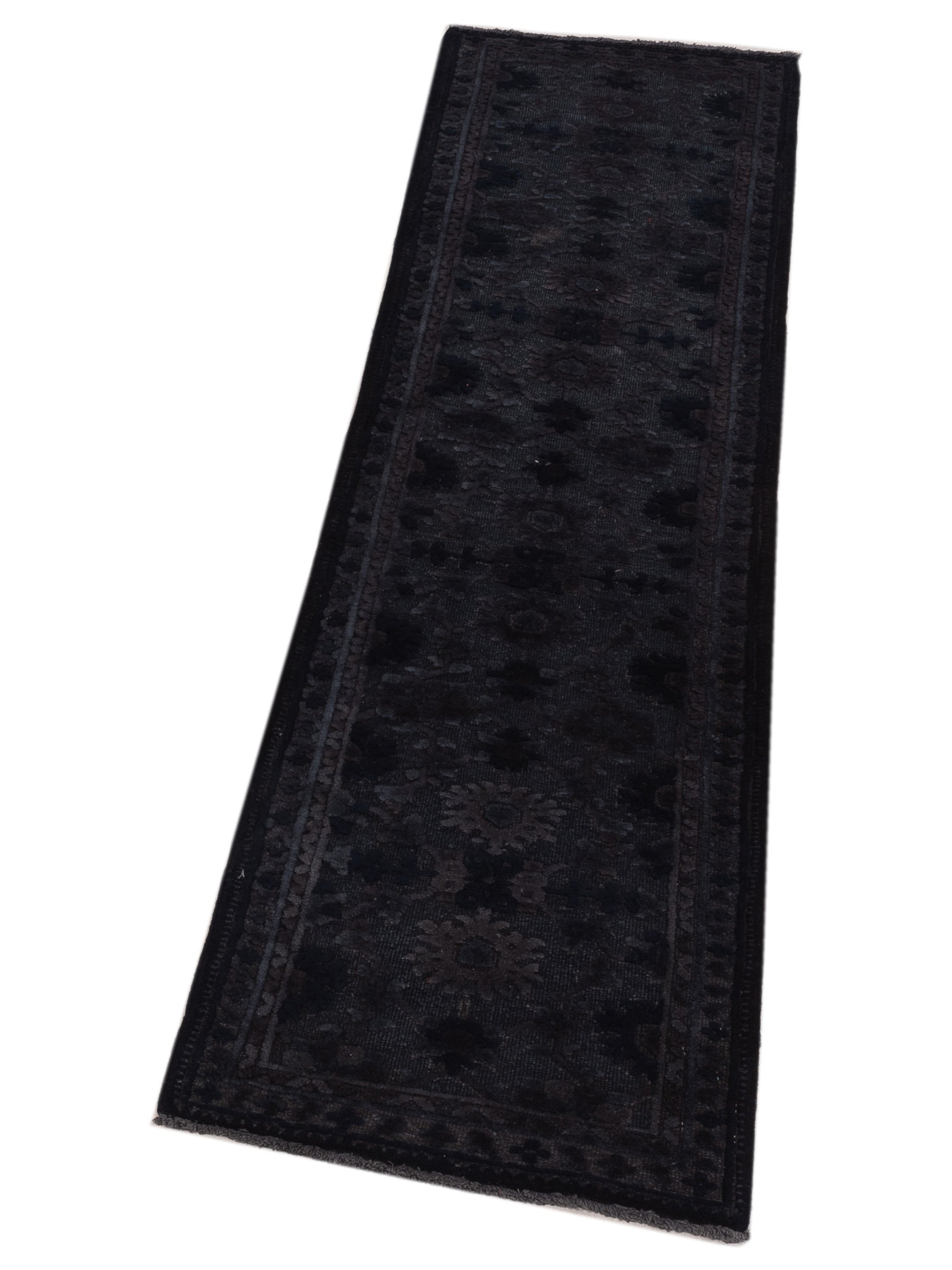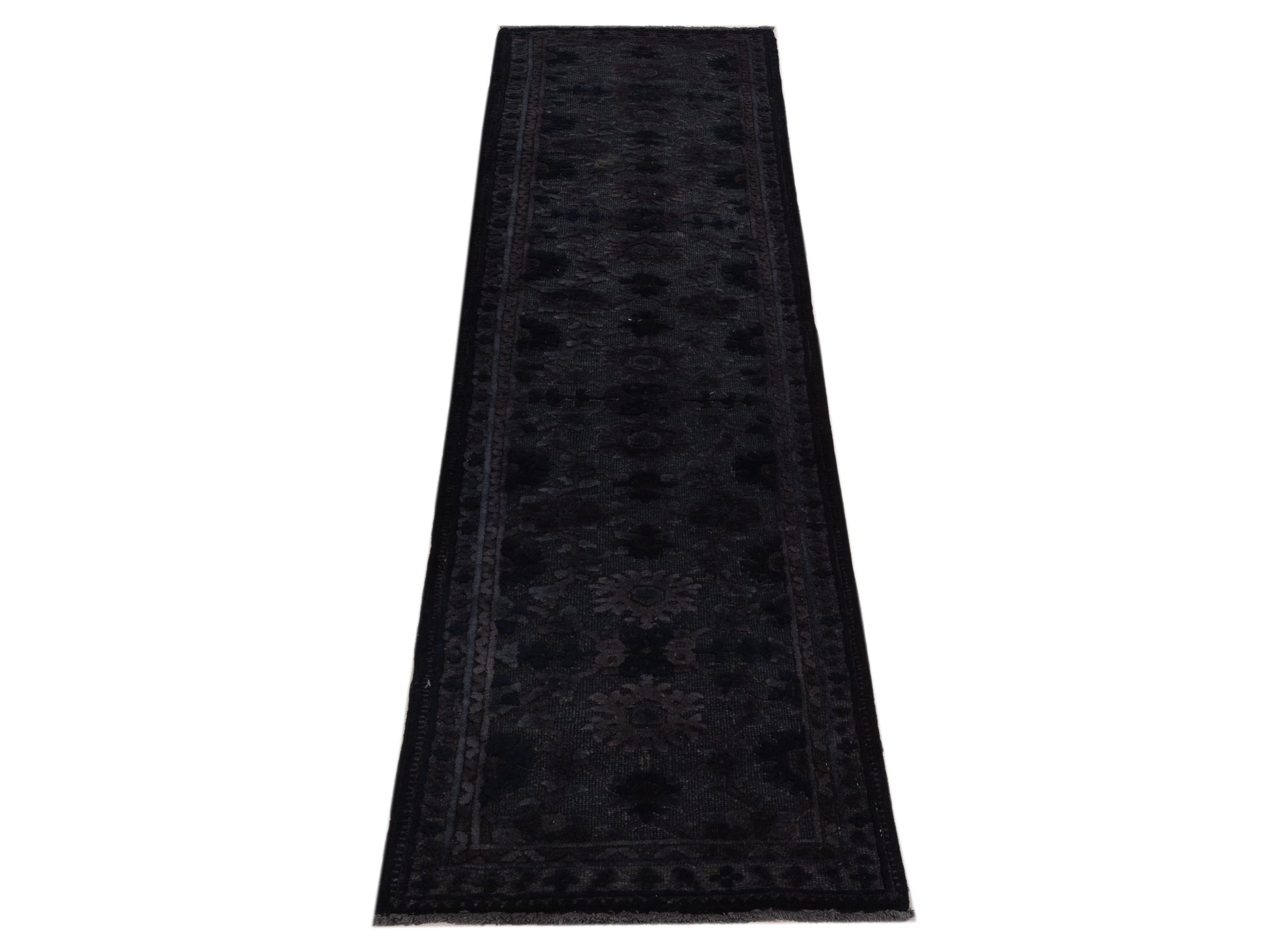 Vintage Black 2.2x7.10 Hand Knotted Rug